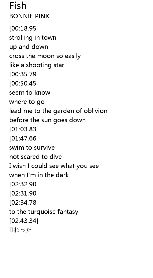 | [00:55.11][00:50.45][00:46.23][00:36.44] | Fish... |