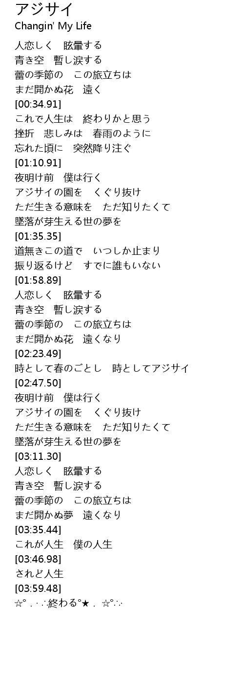 | [02:36.32] | 時として春のごとし 時としてアジサイ |
