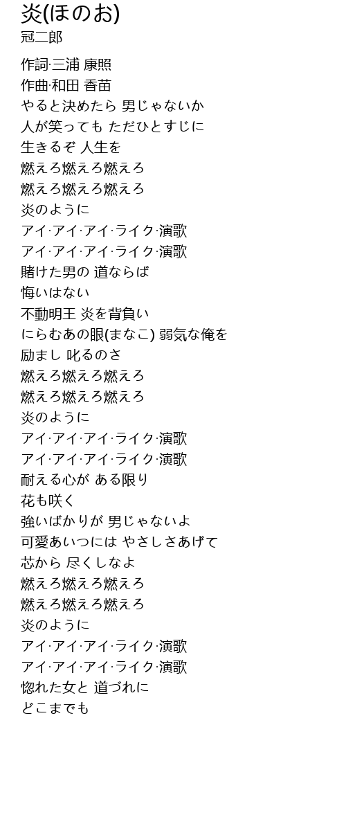 | [01:01.75] | 炎のように |