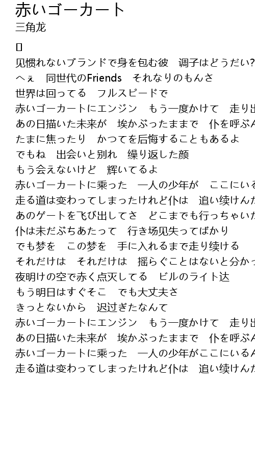 | 赤いゴーカートにエンジン もう一度かけて 走り出すんだ | |
