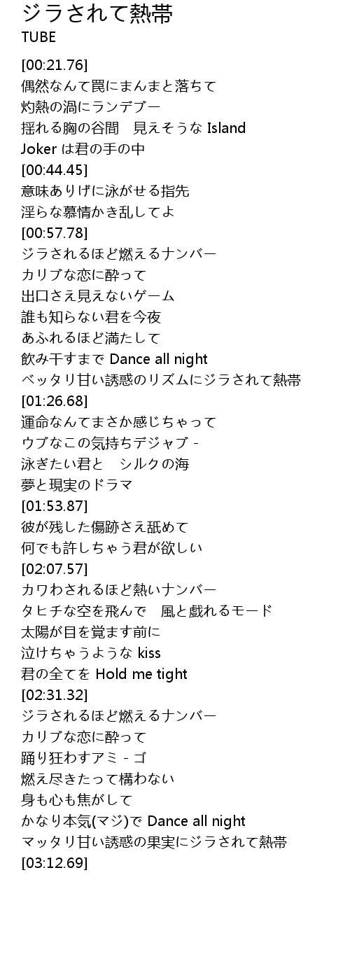 | [00:58.40] | ジラされるほど燃えるナンバー |