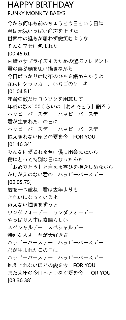 | [03:05.01] | ハッピーバースデー ハッピーバースデー |