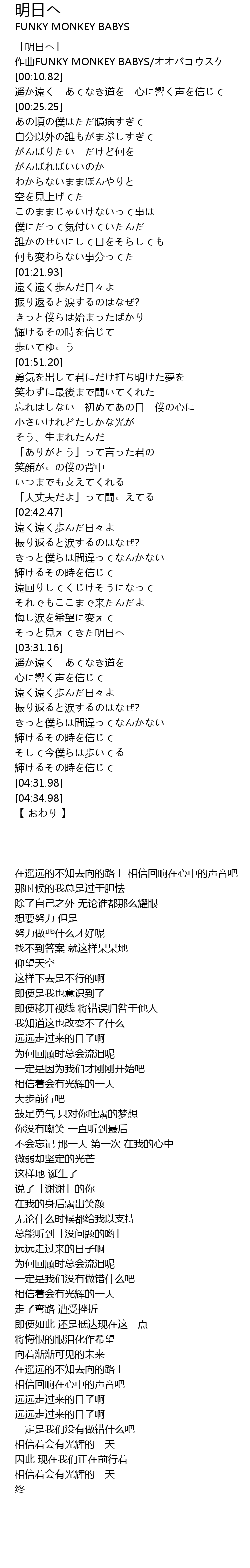 | [00:06.82] | zuo qu FUNKY MONKEY BABYS |