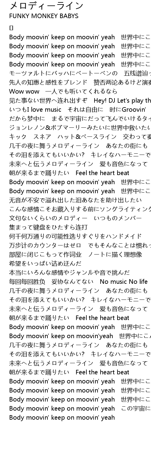 | Body moovin' keep on moovin' yeah 世界中にこんなmusicを | |