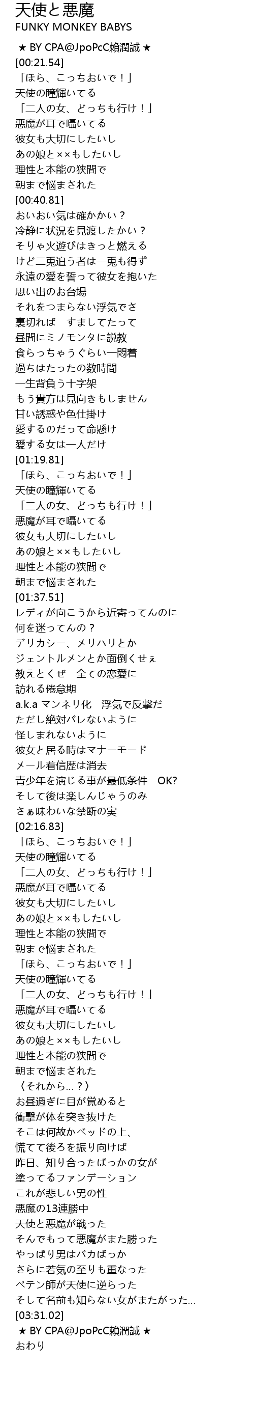 | [03:24.39] | ペテン師が天使に逆らった |