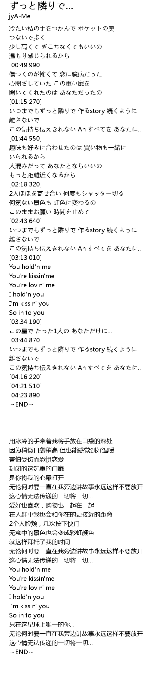 | [02:44.680] | いつまでもずっと隣りで 作るstory 続くように 離さないで |
