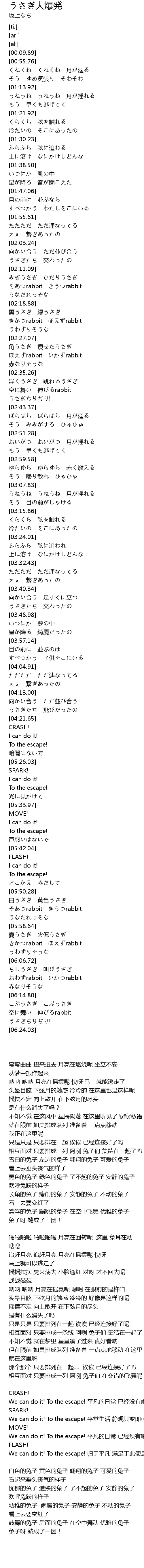 | [02:11.34] | 雪白的兔子 左边的兔子 翱翔的兔子 可爱的兔子 看上去垂头丧气的样子 |