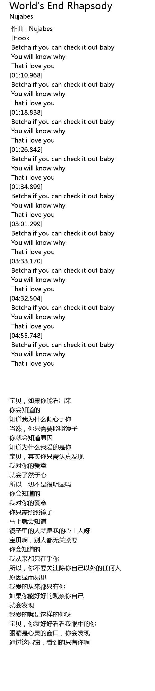 | [04:56.573] | 宝贝,你就好好看看我眼中的你 |