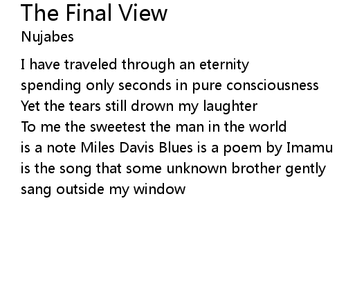 | [01:01.73] | is a note Miles Davis Blues is a poem by Imamu |