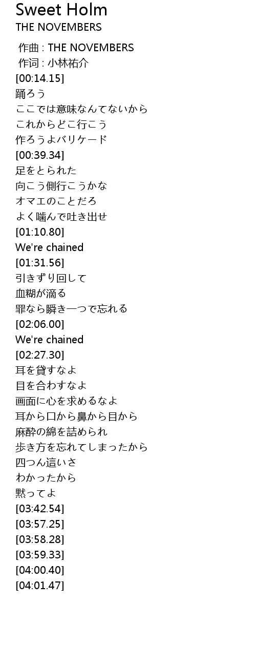 | [00:00.00] | 作曲 : THE NOVEMBERS |