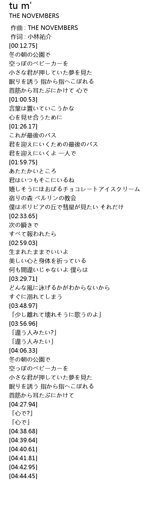 | [00:00.00] | 作曲 : THE NOVEMBERS |