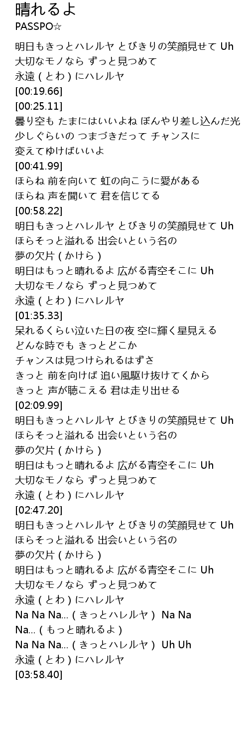 | [03:37.06] | Na Na Na...(きっとハレルヤ) Na Na Na...(もっと晴れるよ) |