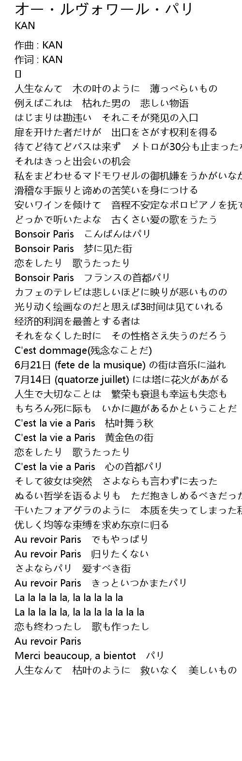 | 歌曲 | オー・ルヴォワール・パリ |