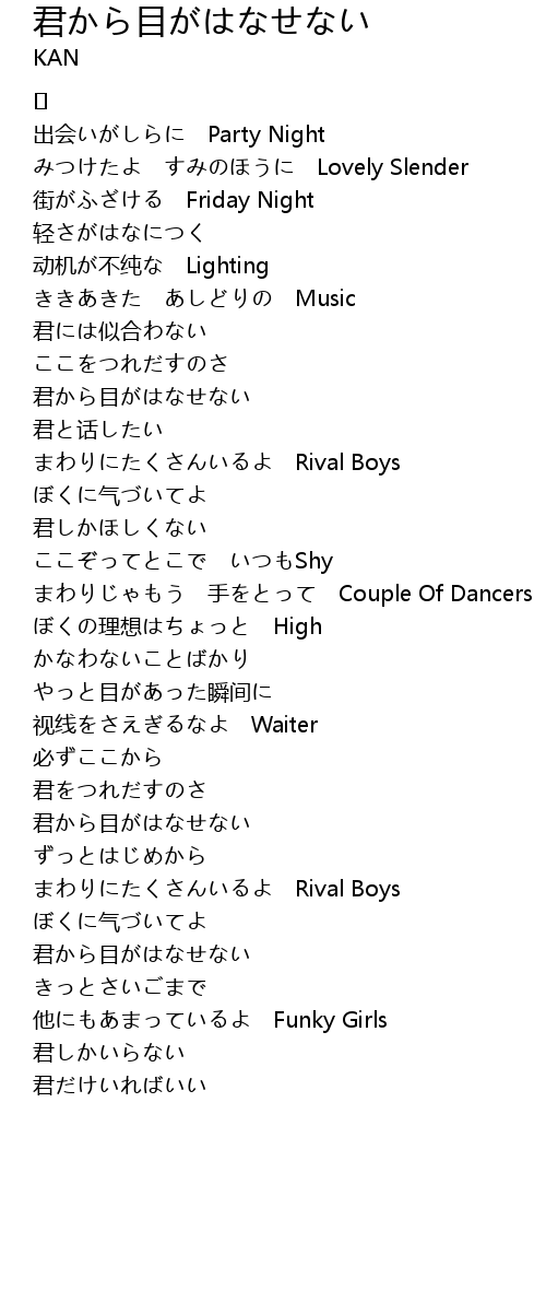 | 歌曲 | 君から目がはなせない |