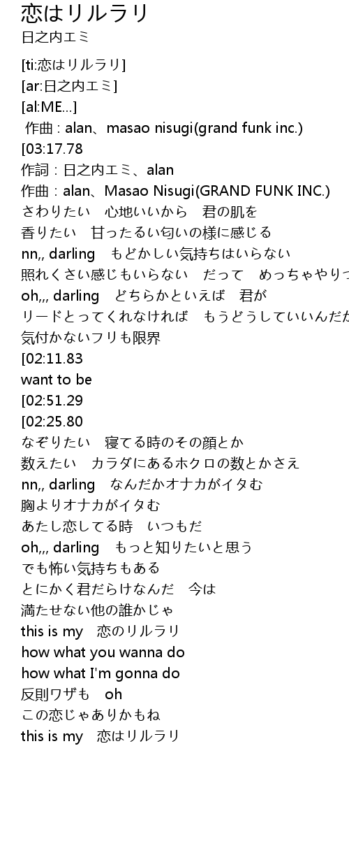 | [00:01.00][03:17.78] | 日之内エミ-恋はリルラリ |