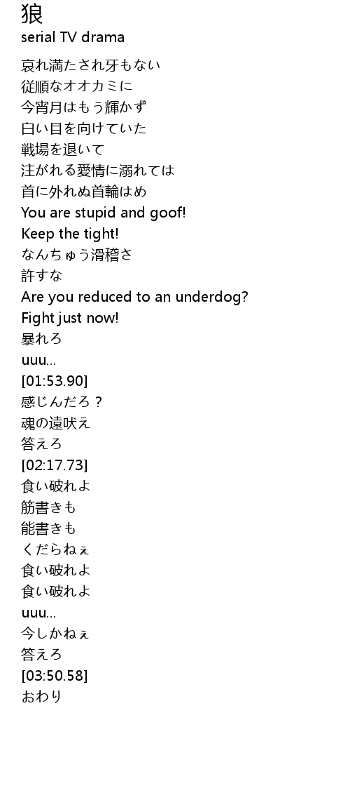 | [02:04.16] | 魂の遠吠え |
