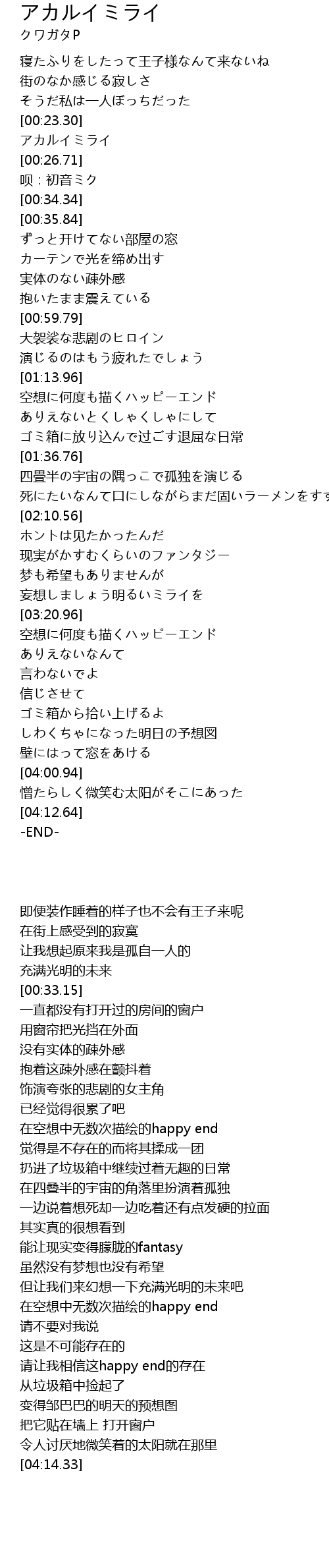 | [00:24.41] | アカルイミライ |