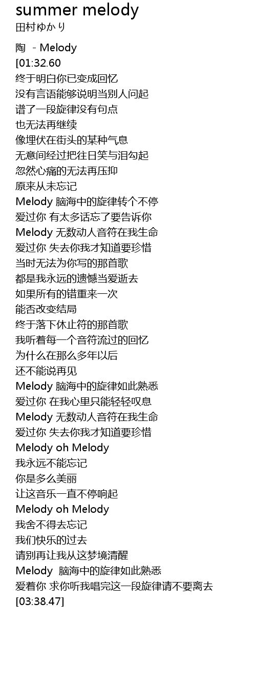 | [03:18.98] | Melody 脑海中的旋律如此熟悉 |
