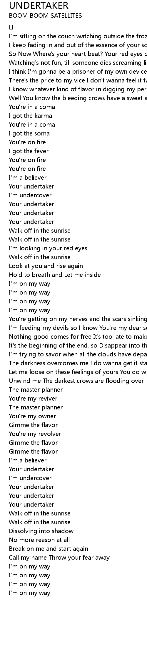 | So Now Where's your heart beat? Your red eyes on the midnight t.v | |