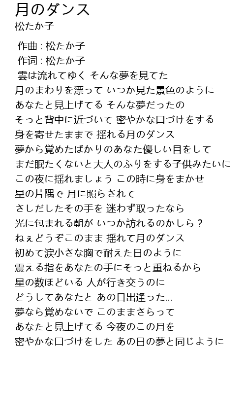 | [02:37.76] | ねぇどうぞこのまま 揺れて月のダンス |