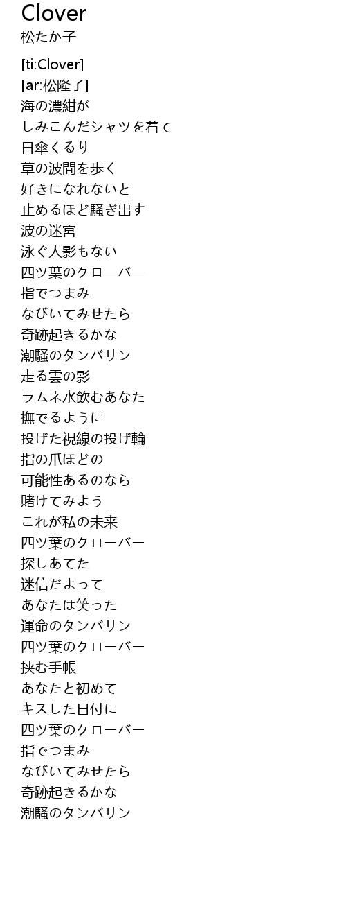 | [01:53.679] | 四ツ葉のクローバー |
