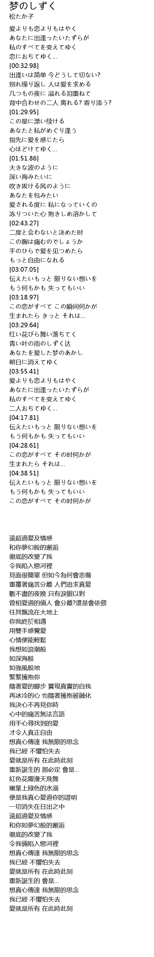 | [03:45.55] | あなたを爱した梦のあかし |