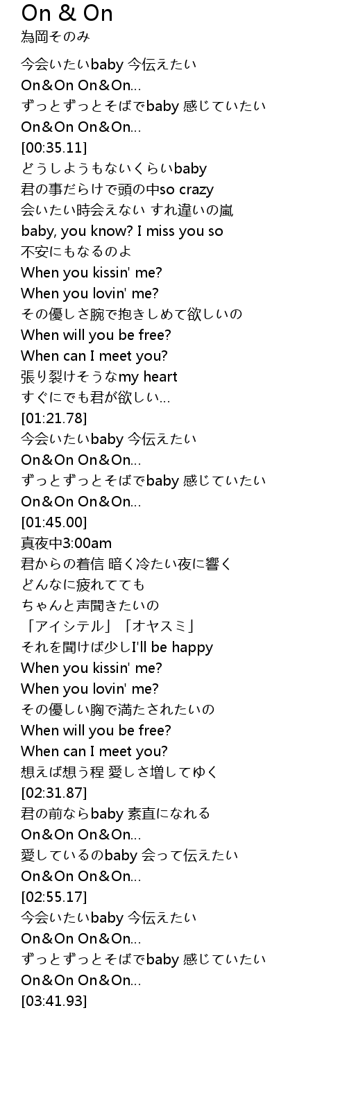 | [01:33.56] | ずっとずっとそばでbaby 感じていたい |