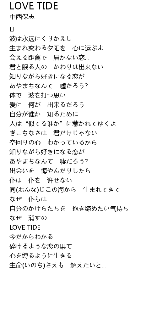 | 歌曲 | LOVE TIDE |