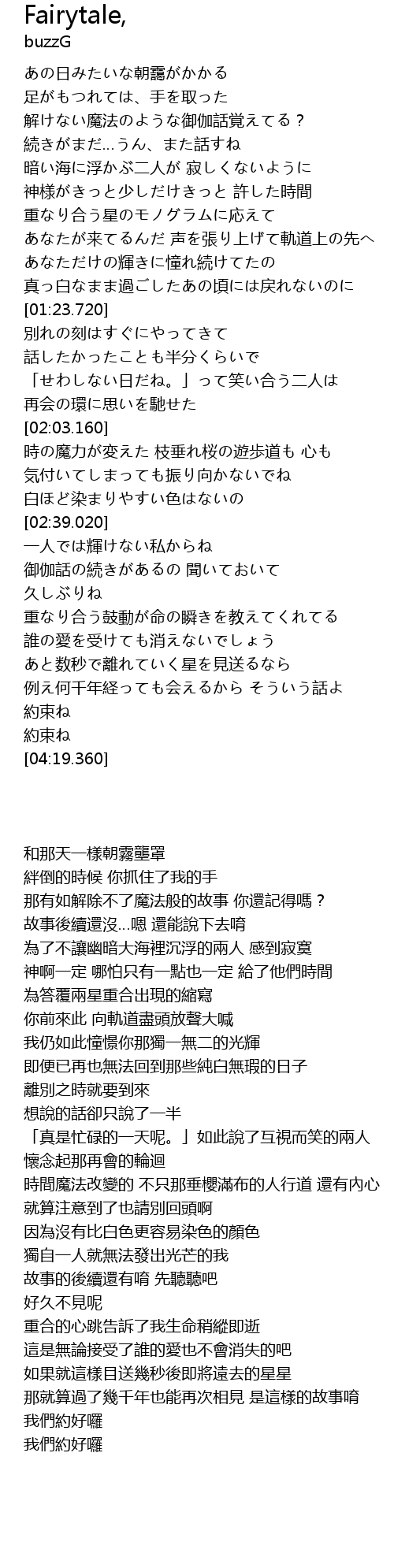| [00:11.350] | 那有如解除不了魔法般的故事 你還記得嗎? |