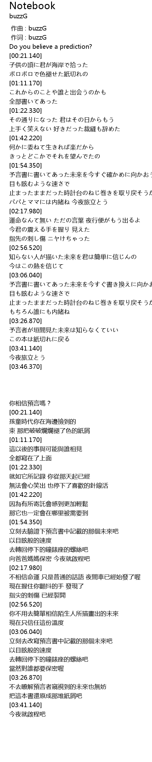 | [00:01.00] | 作词 : buzzG |