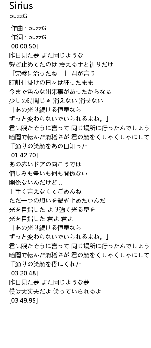 | [01:15.23] | 「あの光り続ける恒星なら ずっと変わらないでいられるよね。」 |