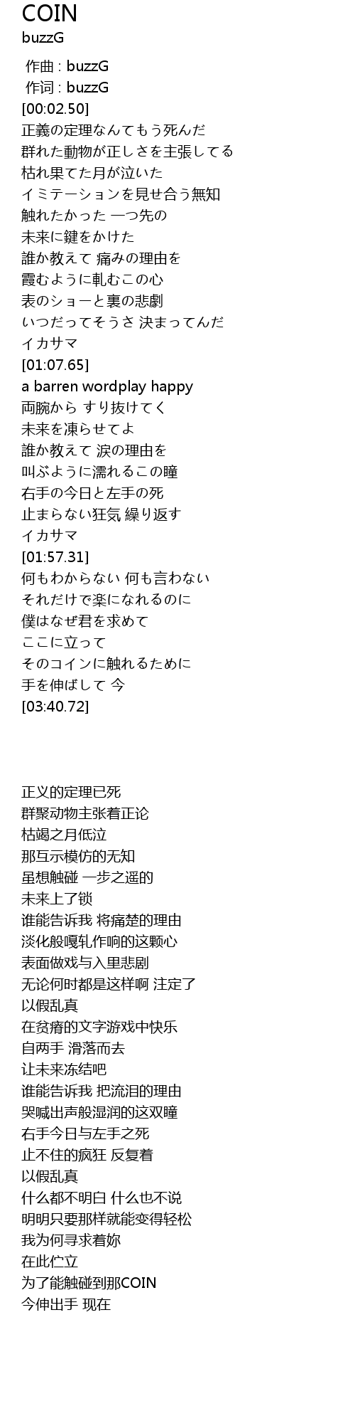 | [03:20.20] | 为了能触碰到那COIN |