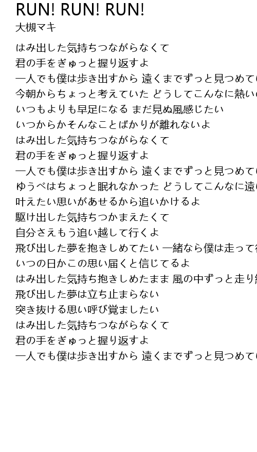 | 飛び出した夢を抱きしめてたい 一緒なら僕は走って行ける | |