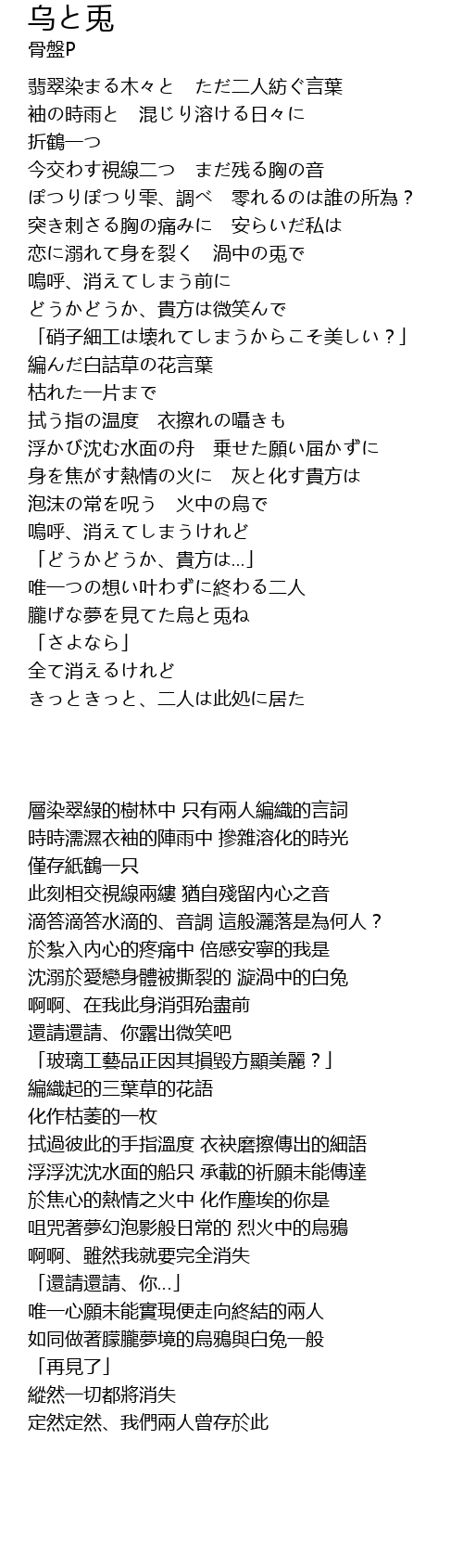 | [02:32.93] | 如同做著朦朧夢境的烏鴉與白兔一般 |