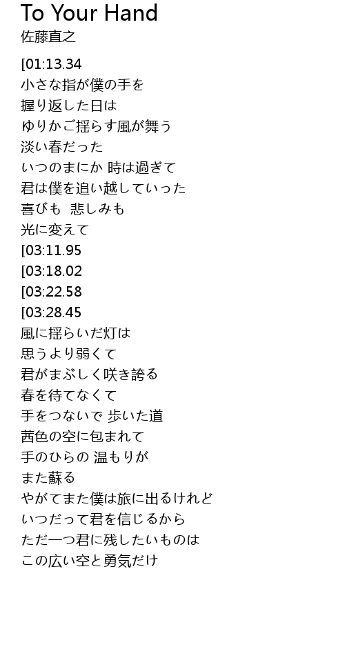 | [02:19.62] | 手のひらの 温もりが |