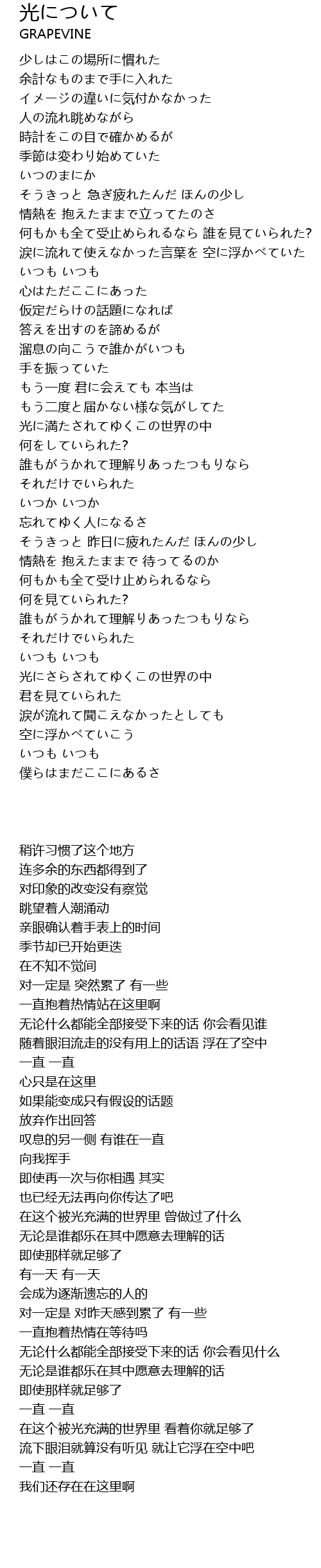 | [04:22.090] | 光にさらされてゆくこの世界の中 君を見ていられた |