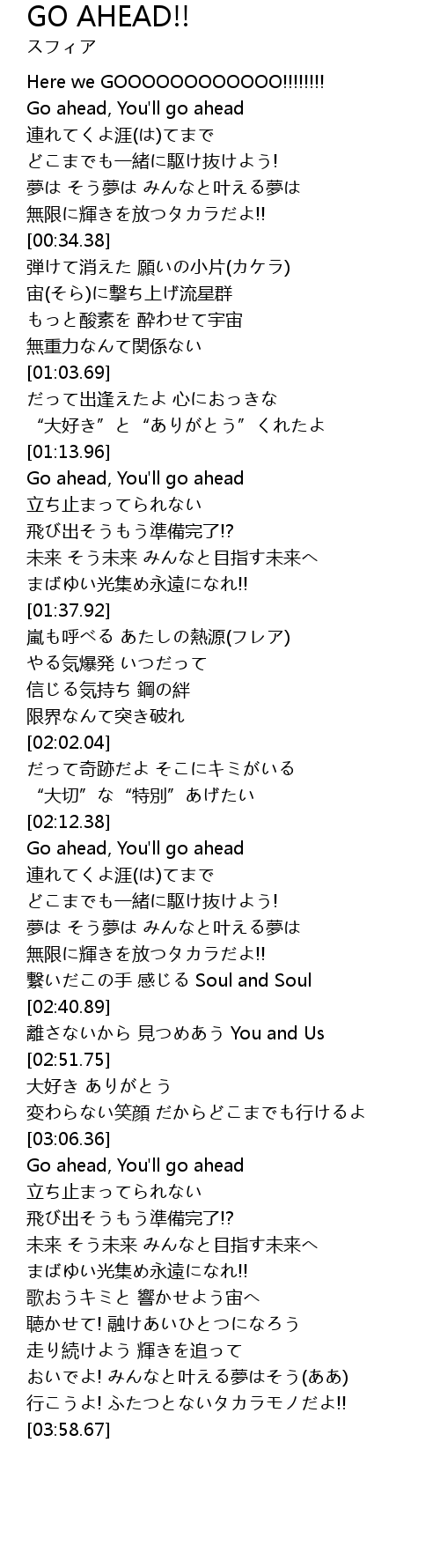 | [02:18.67] | どこまでも一緒に駆け抜けよう! |