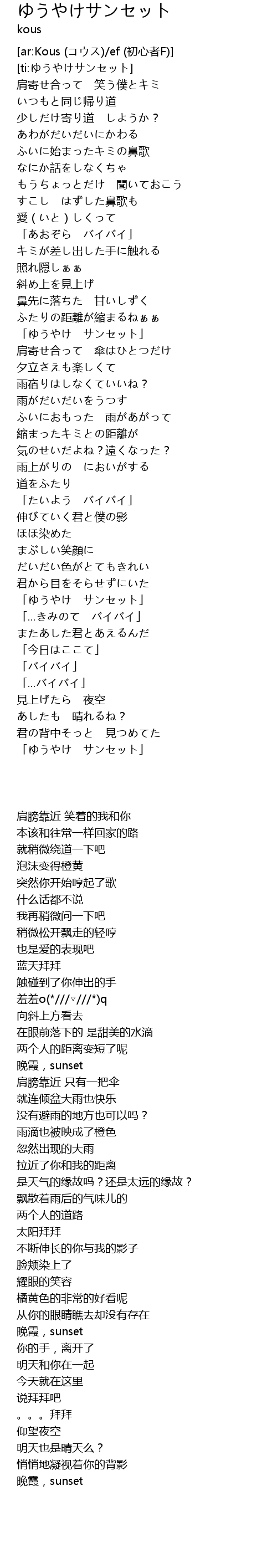 | [ti:ゆうやけサンセット] | |