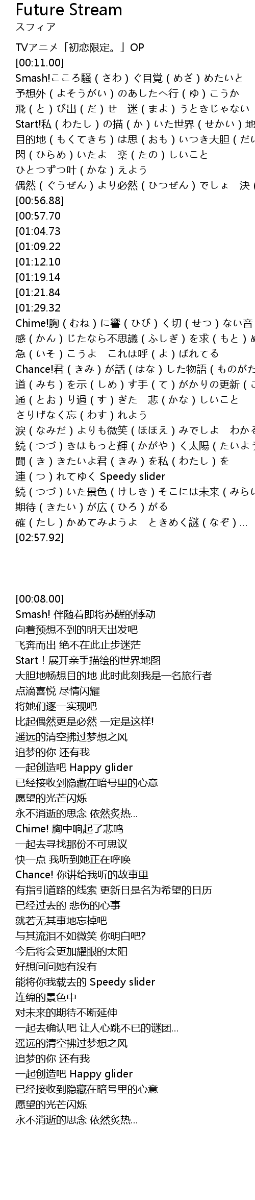 | [00:08.00] | TVアニメ「初恋限定。」OP |