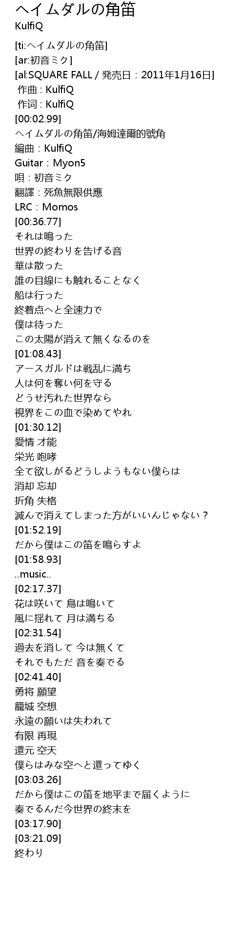 | [00:04.28] | ヘイムダルの角笛/海姆達爾的號角 |
