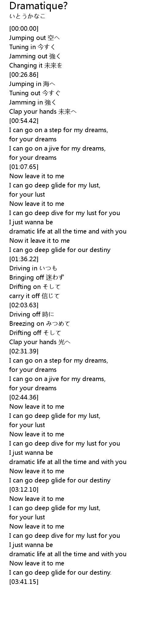 | [03:00.50] | dramatic life at all the time and with you |