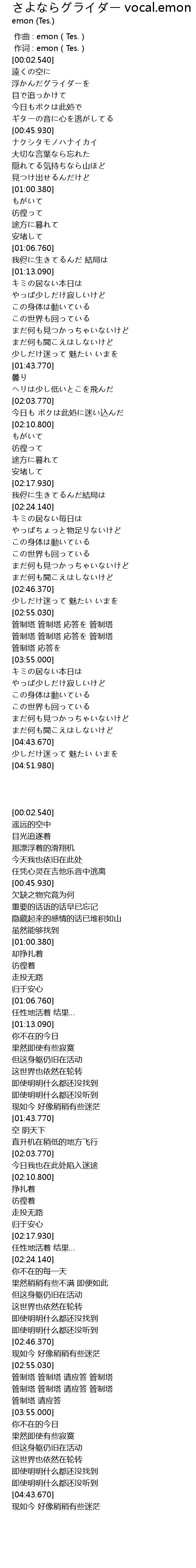 | [00:37.080] | 那漂浮着的滑翔机 |