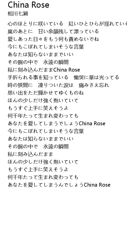 | [01:15.07] | 私に刻み込んだままChina Rose |