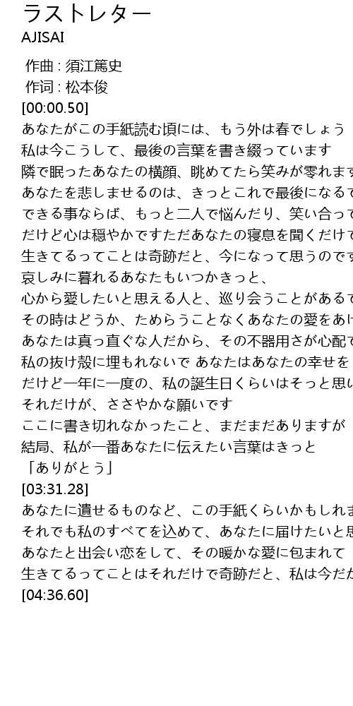 | [03:43.23] | あなたに遺せるものなど、この手紙くらいかもしれません。 |