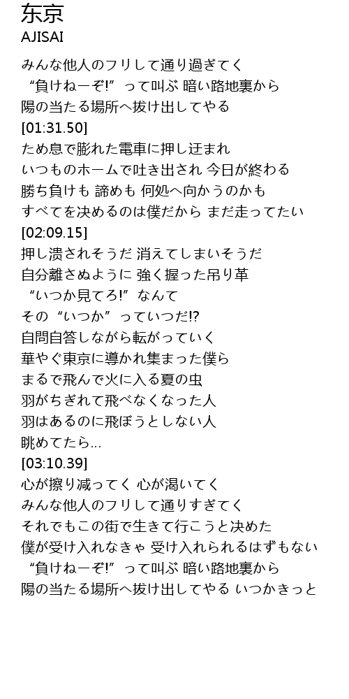 | [02:39.70] | 華やぐ東京に導かれ集まった僕ら |