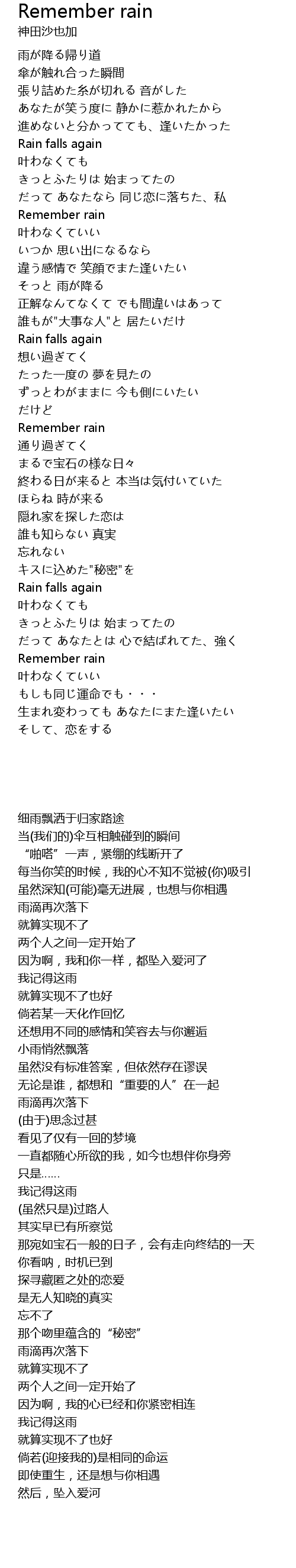 | [00:12.45] | 当(我们的)伞互相触碰到的瞬间 |