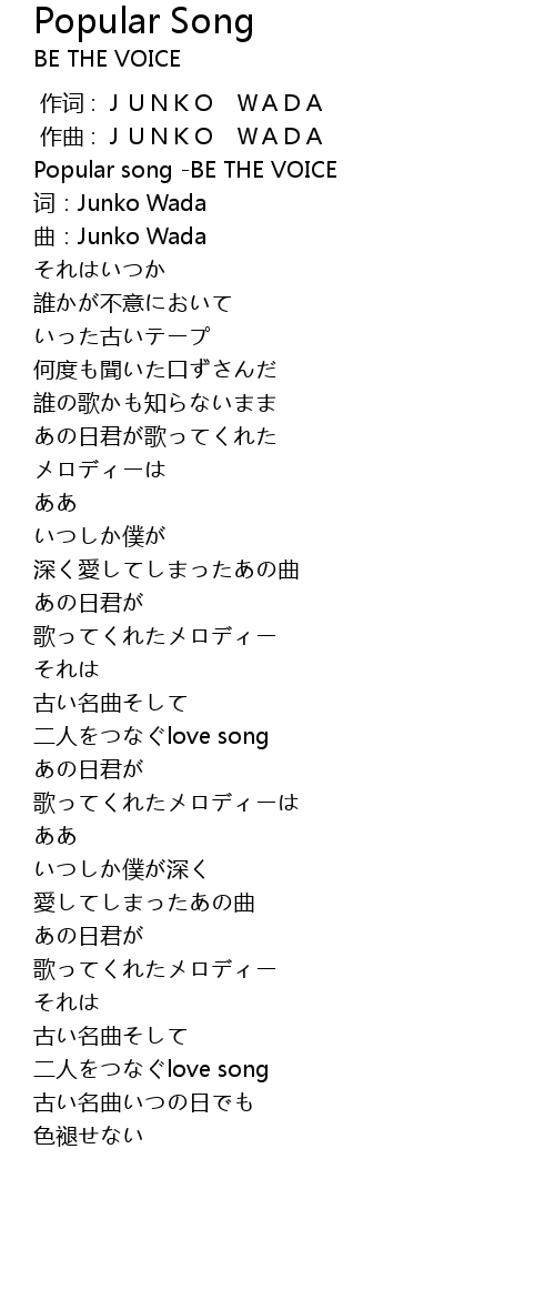 | [00:00.328] | Popular song -BE THE VOICE |