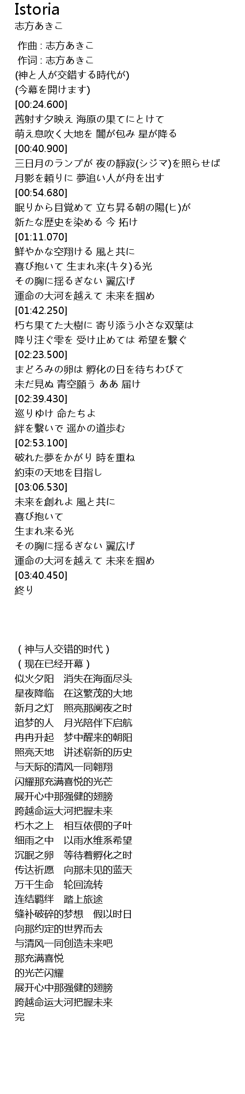| [03:27.160] | 運命の大河を越えて 未来を掴め |