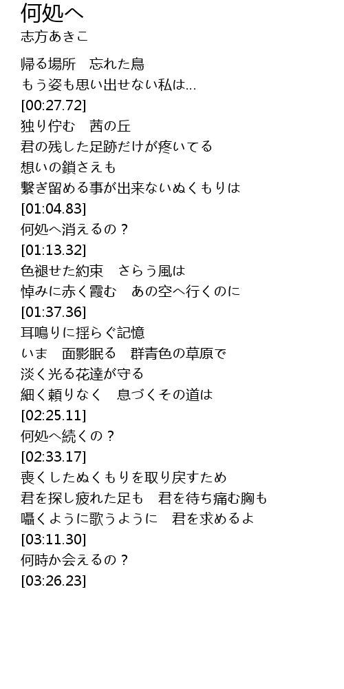 | [00:11.45] | 帰る場所 忘れた鳥 |