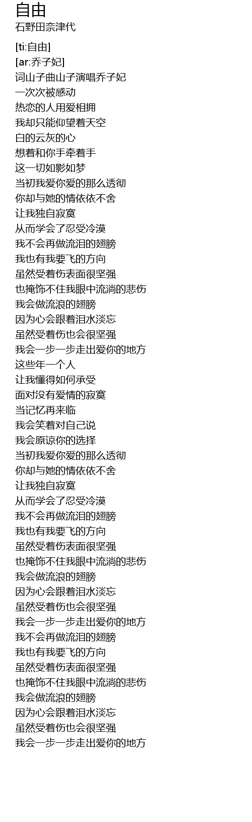 | [03:10.771] | 我不会再做流泪的翅膀 |